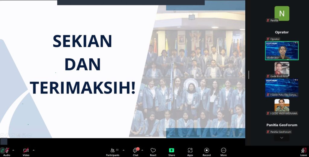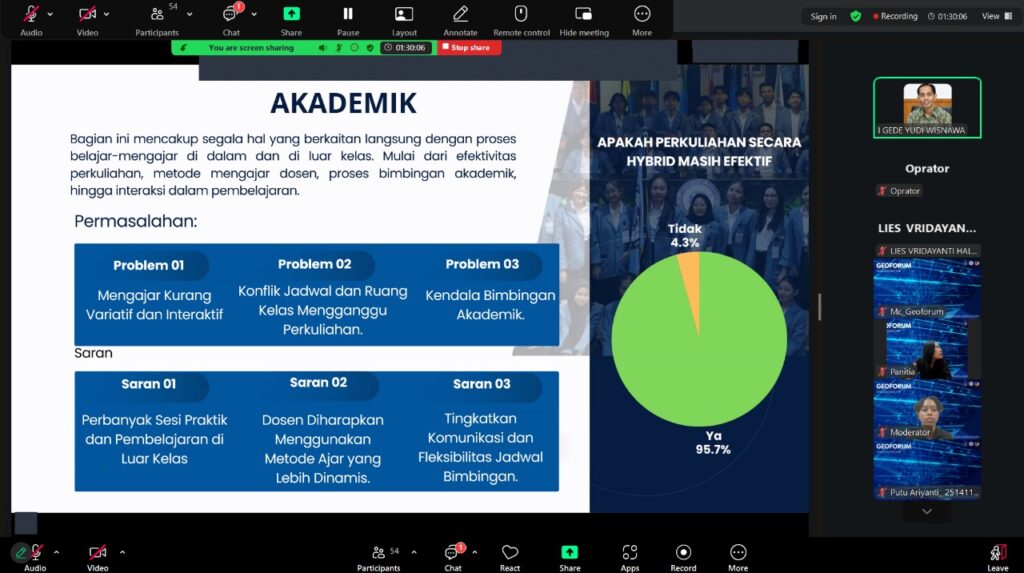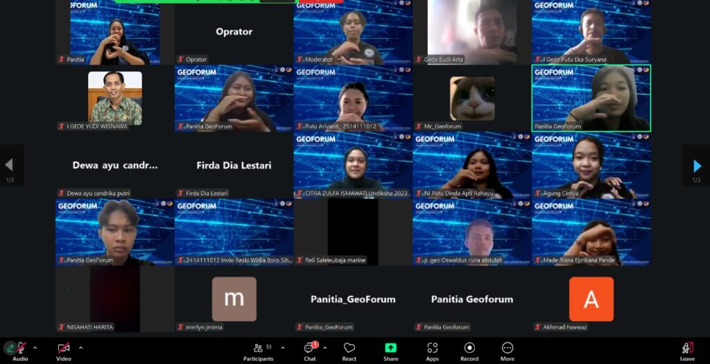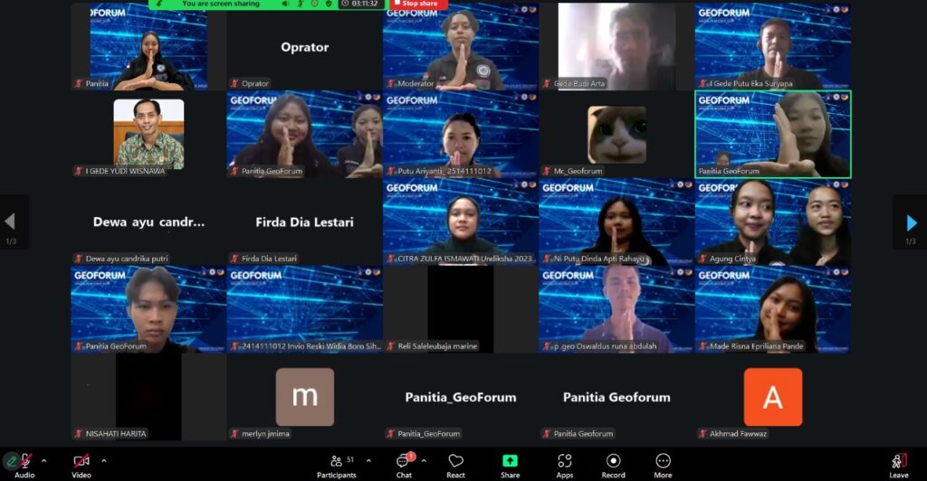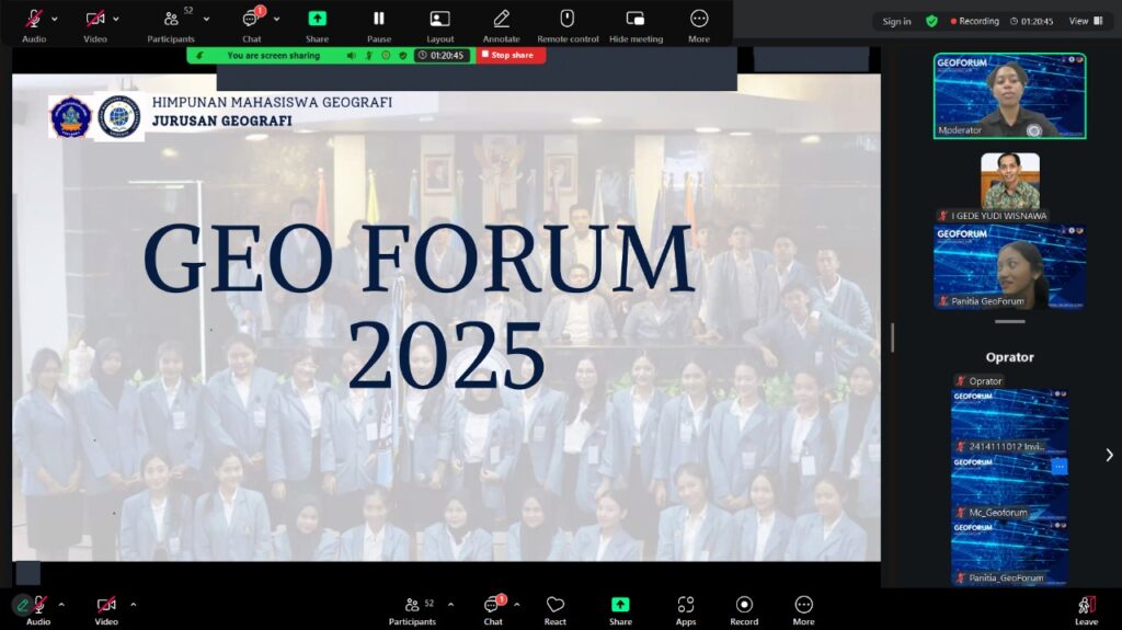 Pada hari Minggu, 05 Oktober 2025, lingkungan Fakultas Hukum dan Ilmu Sosial khususnya Jurusan Geografi diramaikan oleh adanya kegiatan Geo Forum, kegiatan ini merupakan sebuah wadah diskusi yang menampung aspirasi mahasiswa serta mempererat komunikasi antara dosen dan mahasiswa. Forum ini diselenggarakan oleh Himpunan Mahasiswa Jurusan Geografi sebagai bagian dari komitmen bersama untuk menciptakan atmosfer akademik yang produktif dan kolaboratif. Para mahasiswa Jurusan Geografi dengan antusias mengikuti kegiatan diskusi terbuka ini, di mana formulir yang telah diisi oleh seluruh mahasiswa Jurusan Geografi akan dirangkum dan diambil point-pointnya untuk di tampilkan pada PPT. Keluh-kesah mahasiswa tersebut berkaitan dengan pembelajaran, fasilitas kampus, dan peluang pengembangan diri. Diskusi secara interaktif ini memungkinkan mahasiswa untuk mendapatkan respons langsung dari dosen, sehingga terjalin komunikasi dua arah yang konstruktif. Kegiatan Geo Forum tidak hanya menjadi sarana penyampaian aspirasi, tetapi juga sebagai ajang pengembangan keterampilan komunikasi mahasiswa. Tidak hanya sinergi antara mahasiswa dan dosen, tapi dalam forum ini juga menciptakan sinergi antara mahasiswa, dosen, fungsionaris Himpunan Mahasiswa Jurusan Geografi dan juga staff untuk menciptakan solusi bersama yang diharapkan dapat meningkatkan kualitas pembelajaran, pengalaman akademik dan non-akademik, sarana dan prasarana, organisasi, dan pelayanan di Jurusan Geografi.